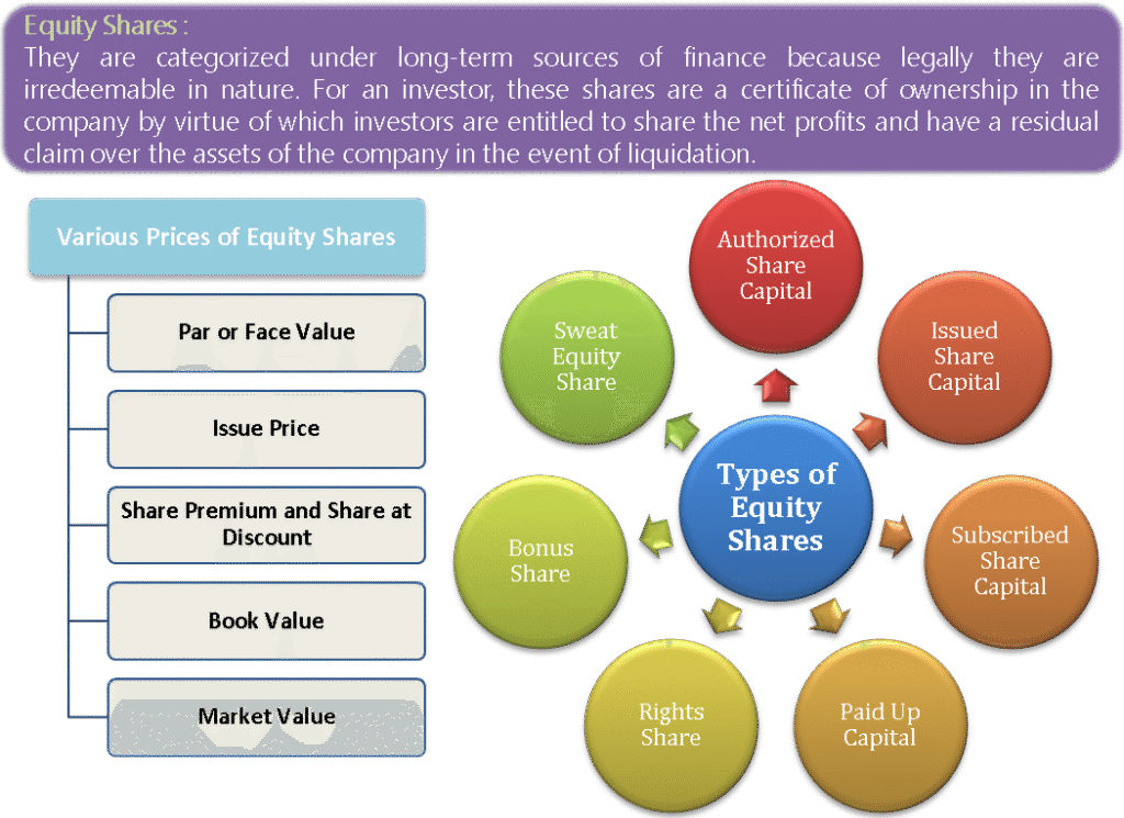कुछ इक्विटी शेयरों को शेयर पूंजी के प्रकार के अनुसार वर्गीकृत किया जाता है-